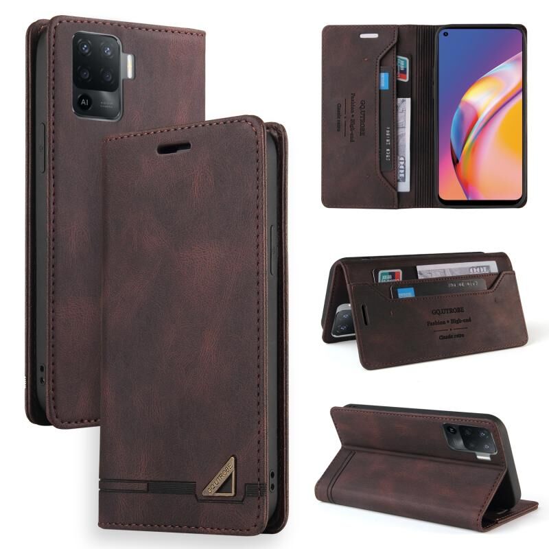 Για OPPO A94 Skin Feel Anti-theft Brush Οριζόντια Flip δερμάτινη θήκη με κάτοχο & υποδοχές καρτών & πορτοφόλι (καφέ)