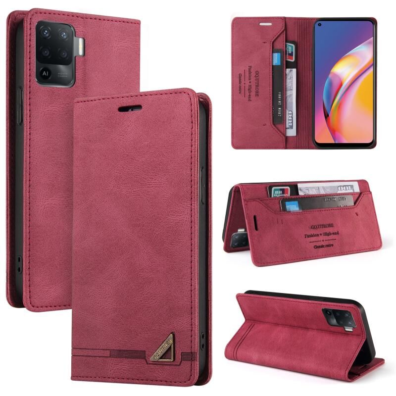 Για OPPO A94 Skin Feel Anti-theft Brush Οριζόντια Flip δερμάτινη θήκη με κάτοχο & υποδοχές καρτών & πορτοφόλι (κόκκινο κρασί)