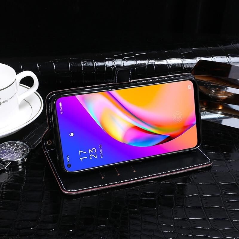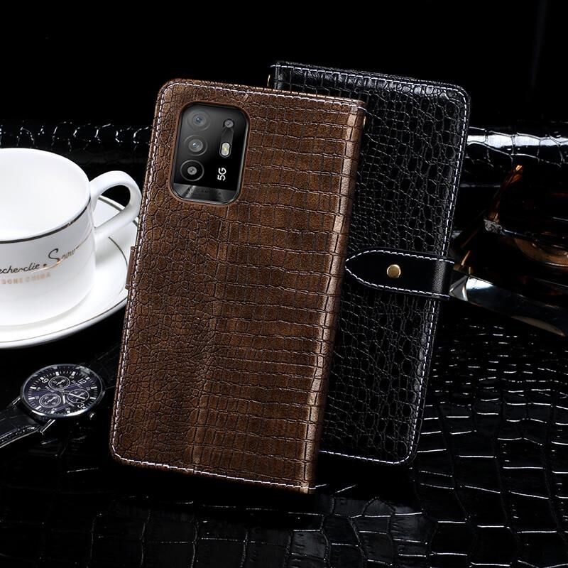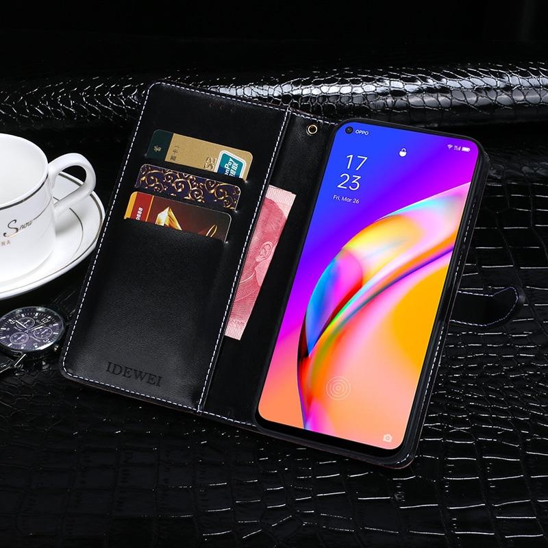 Για OPPO A95 5G idewei Δερμάτινη θήκη οριζόντιας αναδίπλωσης με υφή κροκόδειλου με βάση & υποδοχές καρτών & πορτοφόλι (Μαύρο) (Μαύρο)