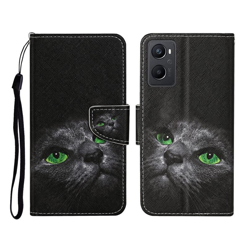 Θήκη τηλεφώνου από δέρμα με σχέδιο πολύχρωμης ζωγραφικής για OPPO A96 4G / Realme 9i (Μαύρο Πεντάγραμμο)