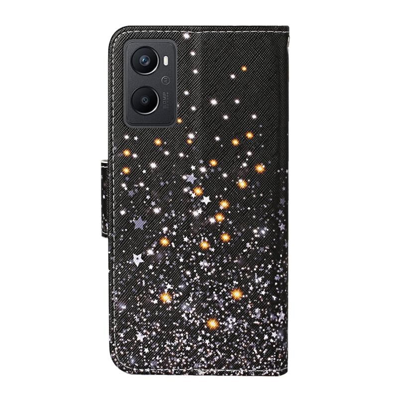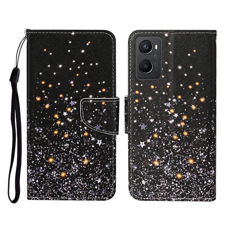 Θήκη τηλεφώνου από δέρμα με σχέδιο πολύχρωμης ζωγραφικής για OPPO A96 4G / Realme 9i (Μαύρο Πεντάγραμμο)