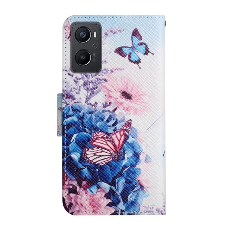 Θήκη τηλεφώνου από δέρμα με σχέδιο πολύχρωμης ζωγραφικής για OPPO A96 4G / Realme 9i (Μαύρο Πεντάγραμμο)