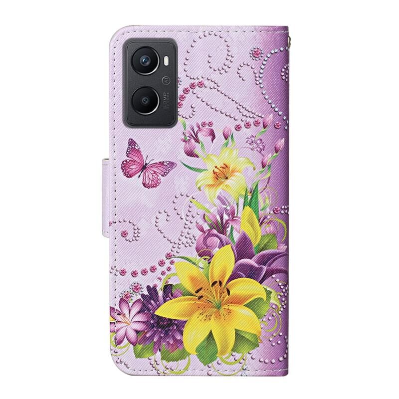 Θήκη τηλεφώνου από δέρμα με σχέδιο πολύχρωμης ζωγραφικής για OPPO A96 4G / Realme 9i (Μαύρο Πεντάγραμμο)