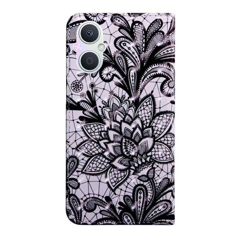 Θήκη τηλεφώνου από δέρμα με τρισδιάστατο σχέδιο για OPPO A96 5G (Μαύρο Δαντέλα)