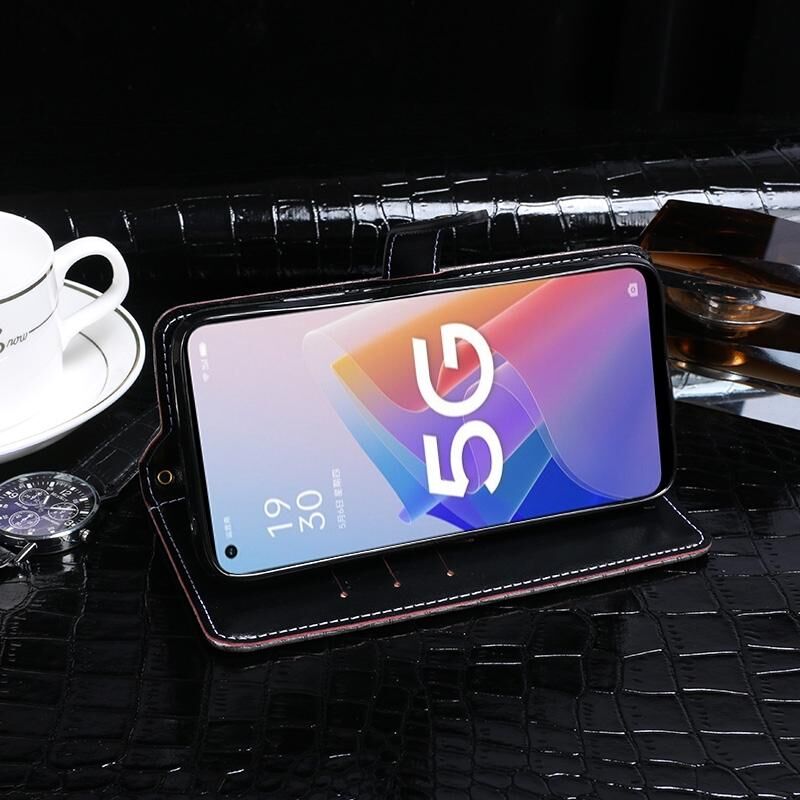 Για OPPO A96 5G Κινεζική Έκδοση θήκη τηλεφώνου από δέρμα με οριζόντιο άνοιγμα και υφή κροκόδειλου idewei (Σκούρο Μπλε) (idewei)