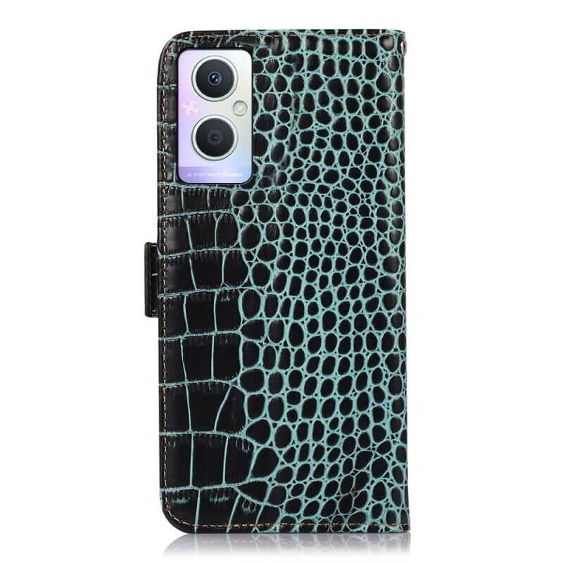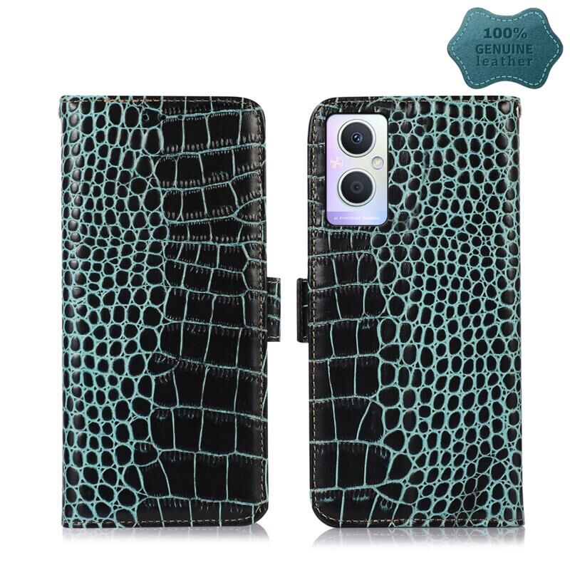 Θήκη τηλεφώνου από γνήσιο δέρμα αγελάδας με επένδυση κροκόδειλου για OPPO A96 5G CN Version / Reno7 Z 5G (Μαύρο)