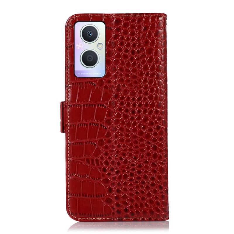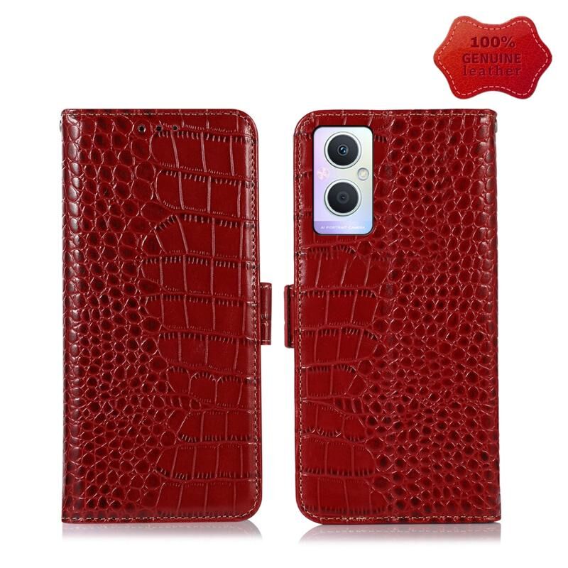 Θήκη τηλεφώνου από γνήσιο δέρμα αγελάδας με επένδυση κροκόδειλου για OPPO A96 5G CN Version / Reno7 Z 5G (Μαύρο)