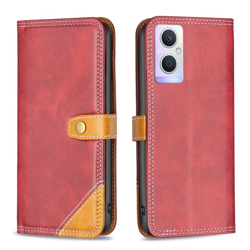 Θήκη τηλεφώνου από δέρμα με διπλή ραφή και αντιστοίχιση χρωμάτων για OPPO A96 5G (Μαύρο)
