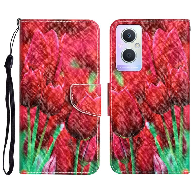 Θήκη τηλεφώνου από δέρμα με έγχρωμο σχέδιο για OPPO A96 5G (Τουλίπες)