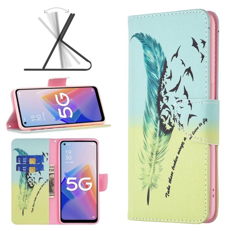 Θήκη τηλεφώνου από δέρμα με έγχρωμο σχέδιο (Φτερό) για OPPO A96 5G (Κόκκινο)