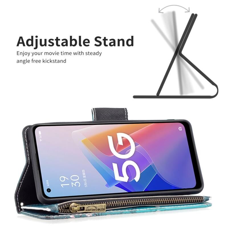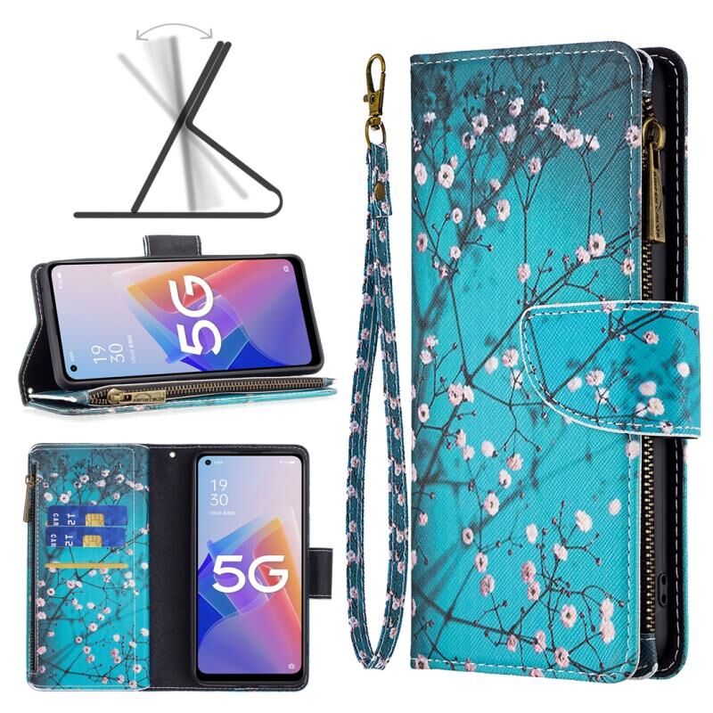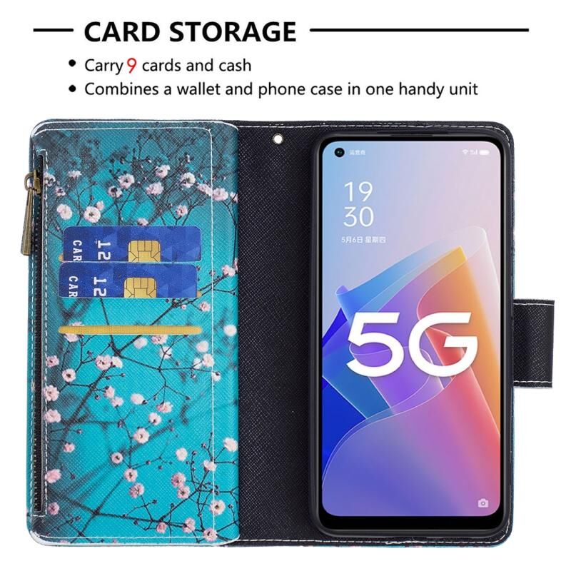 Θήκη τηλεφώνου από δέρμα με φερμουάρ και πολύχρωμο σχέδιο για OPPO A96 5G (Κόκκινο)
