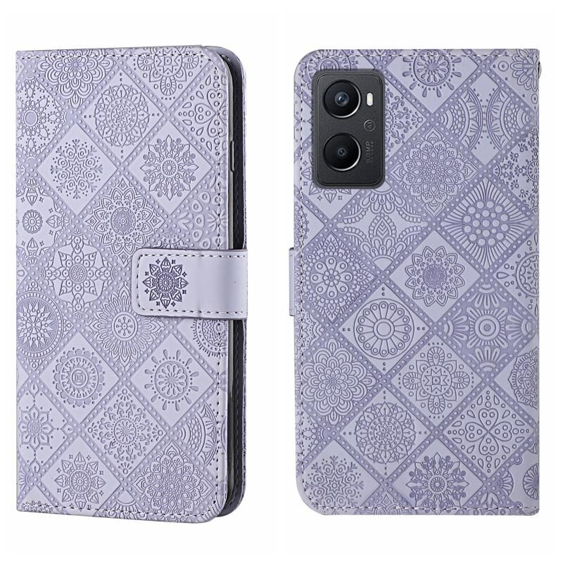 Για OPPO A96 5G Ethnic Style ανάγλυφο μοτίβο δερμάτινη θήκη τηλεφώνου (μωβ)