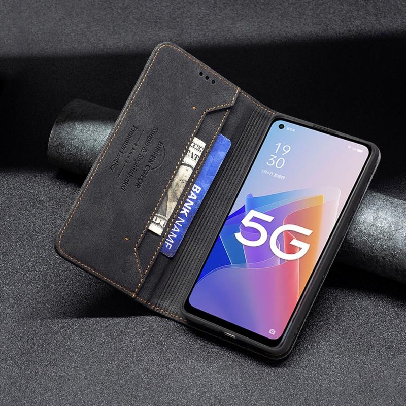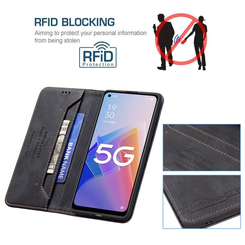 Θήκη τηλεφώνου δερμάτινη με μαγνητικό κλείσιμο και προστασία RFID κατά της κλοπής για OPPO A96 5G (Μπλε)
