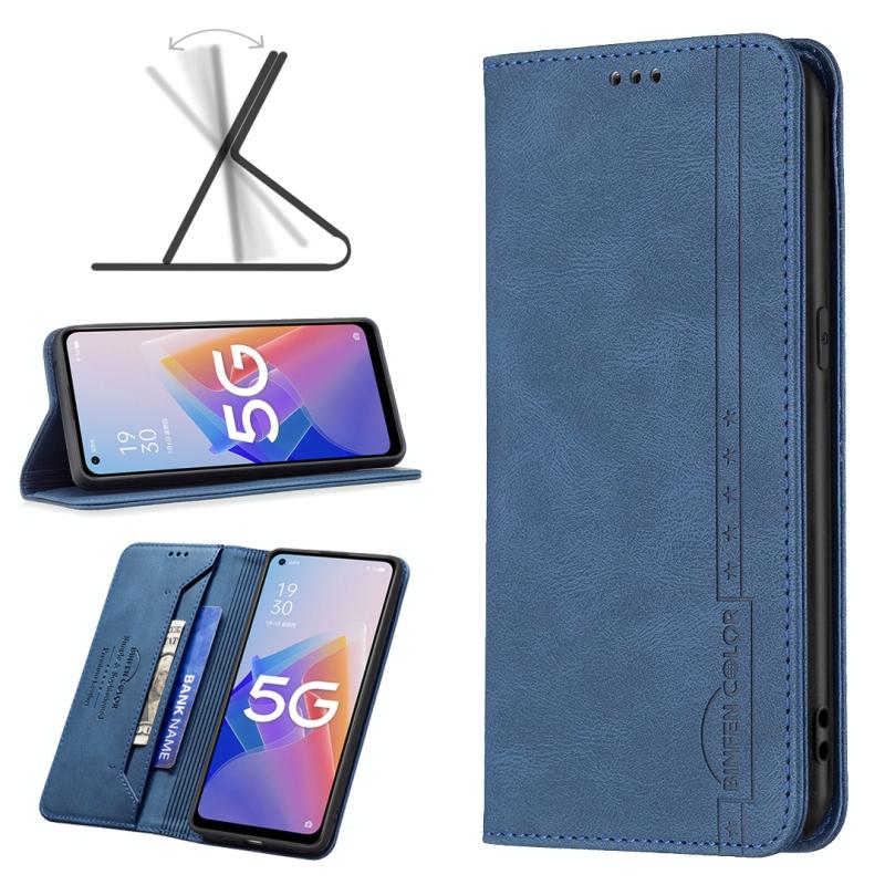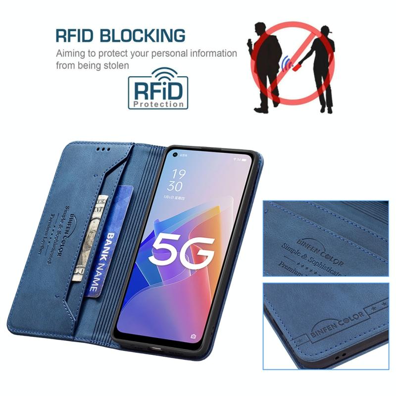 Θήκη τηλεφώνου δερμάτινη με μαγνητικό κλείσιμο και προστασία RFID κατά της κλοπής για OPPO A96 5G (Μπλε)