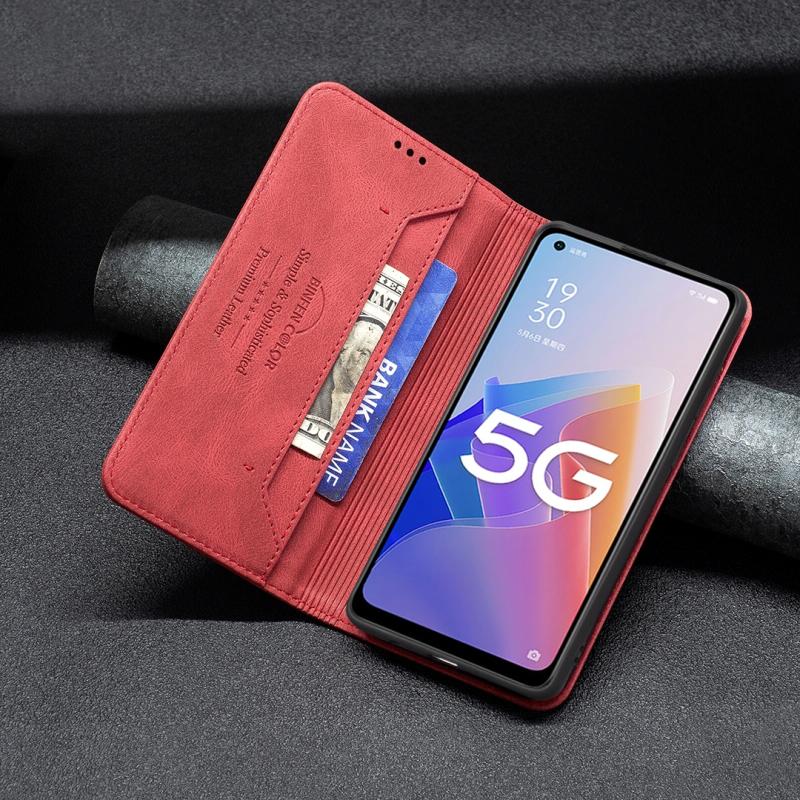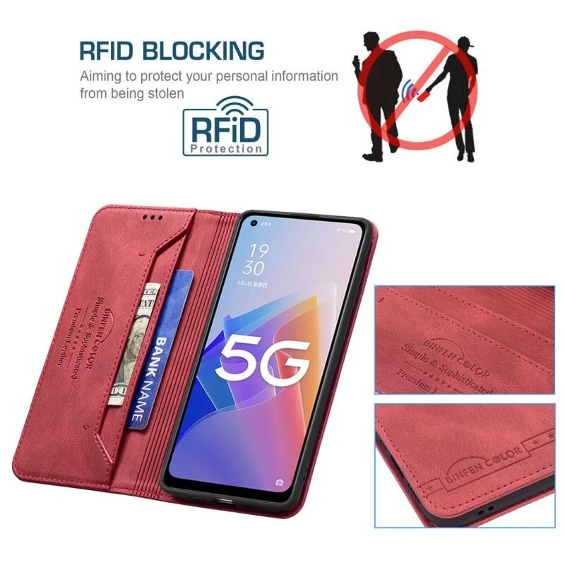 Θήκη τηλεφώνου δερμάτινη με μαγνητικό κλείσιμο και προστασία RFID κατά της κλοπής για OPPO A96 5G (Μπλε)