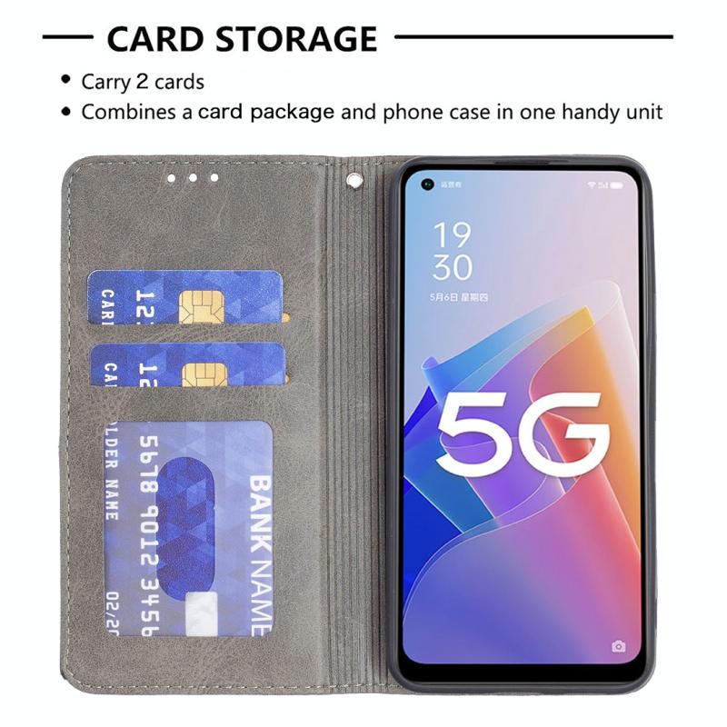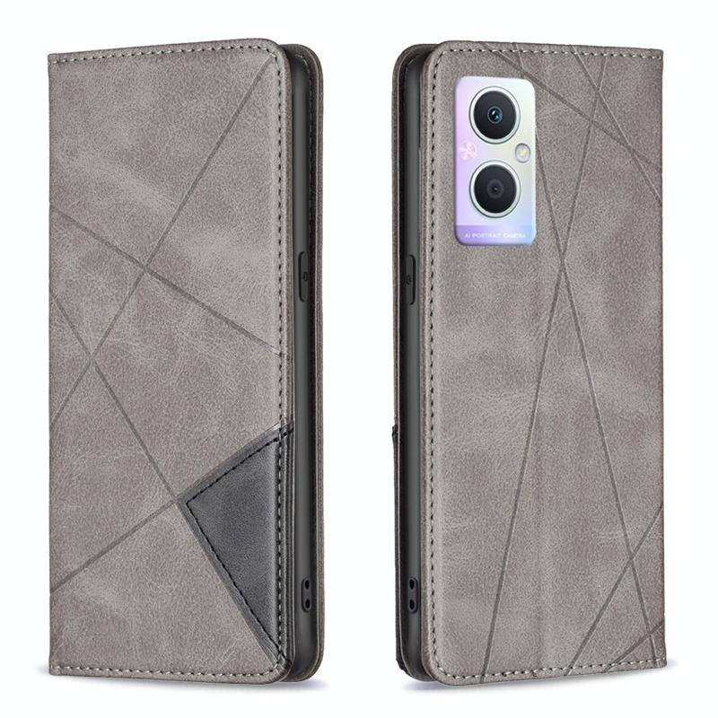 Θήκη τηλεφώνου από δέρμα με αόρατο μαγνητικό κλείσιμο για OPPO A96 5G (Γκρι)