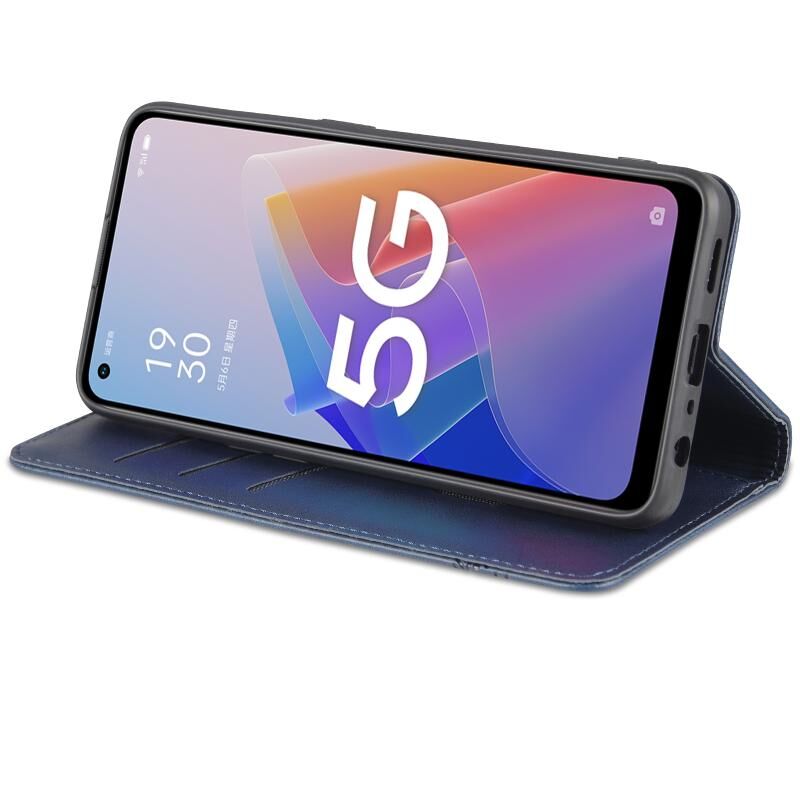 Θήκη τηλεφώνου από δέρμα με μαγνητικό κλείσιμο και υφή μοσχαριού για OPPO A96 5G/Reno7 Z 5G (Global) (Καφέ σκούρο) (Μπλε)