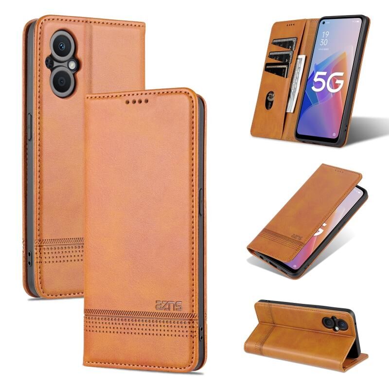 Θήκη τηλεφώνου από δέρμα με μαγνητικό κλείσιμο και υφή μοσχαριού για OPPO A96 5G/Reno7 Z 5G (Global) (Καφέ σκούρο) (Καφέ)