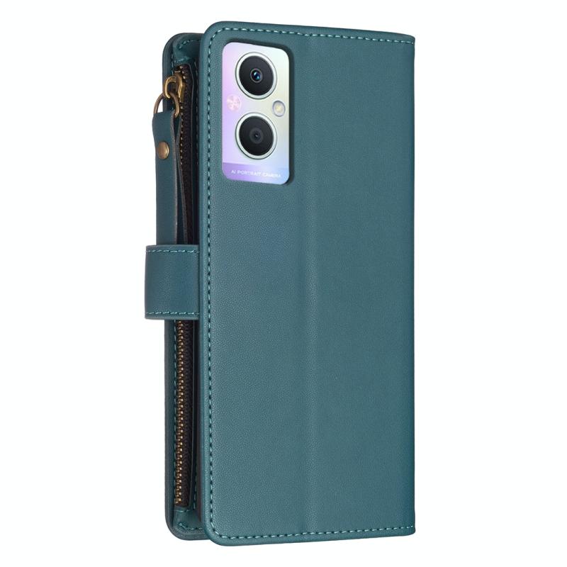Για OPPO A96 5G / Reno7 Z Θήκη Τηλεφώνου από Δέρμα με Γυριστό Σχεδιασμό και 9 Θήκες Καρτών με Φερμουάρ (πράσινο)