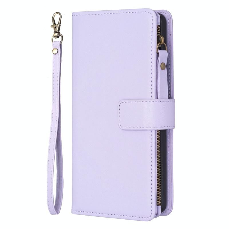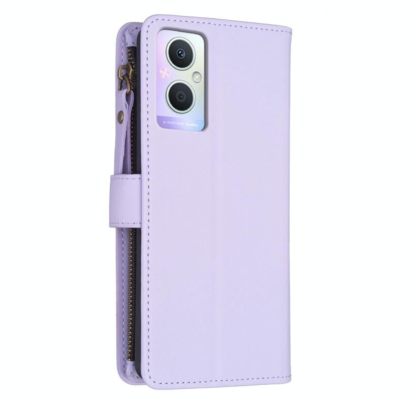 Για OPPO A96 5G / Reno7 Z Θήκη Τηλεφώνου από Δέρμα με Γυριστό Σχεδιασμό και 9 Θήκες Καρτών με Φερμουάρ (ανοιχτό μωβ)