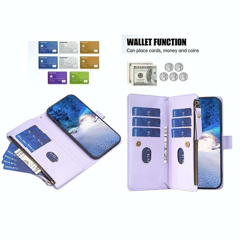 4. Πορτοφόλι με Φερμουάρ: Υπερπολλαπλές υποδοχές καρτών μπορούν να χωρέσουν 9 κάρτες. Το άνοιγμα και το κλείσιμο του διαμερίσματος με φερμουάρ προστατεύει τα χρήματά σας. Άνετο και πρακτικό για να βγαίνετε έξω με μια τσάντα κινητού!