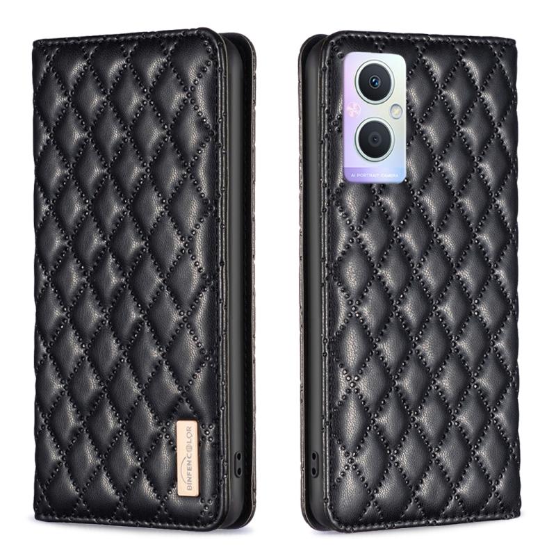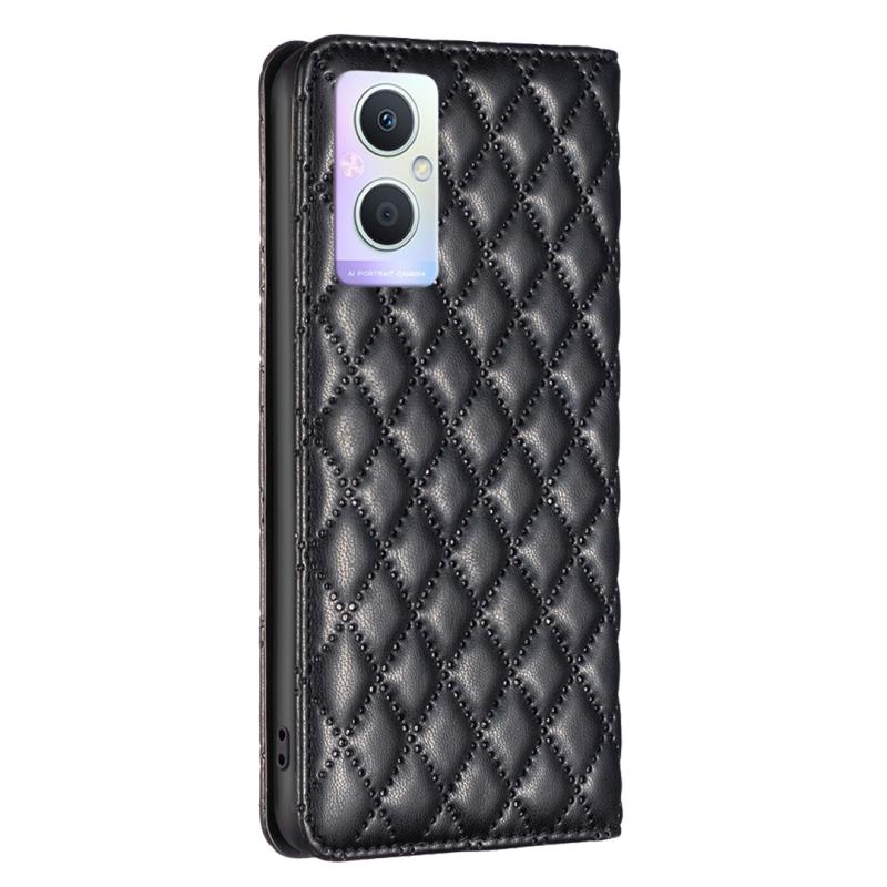 Θήκη τηλεφώνου τύπου flip από δέρμα με μαγνητικό σχέδιο διαμαντόπλεγμα για OPPO A96 5G / Reno7 Z (Μαύρο)