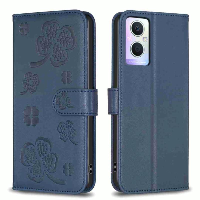 For OPPO A96 5G / Reno7 Z Four-leaf Embossed Leather Phone Case(Blue)