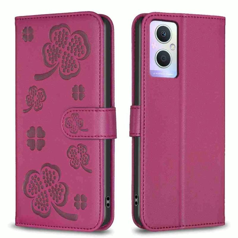 For OPPO A96 5G / Reno7 Z Four-leaf Embossed Leather Phone Case(Rose Red)