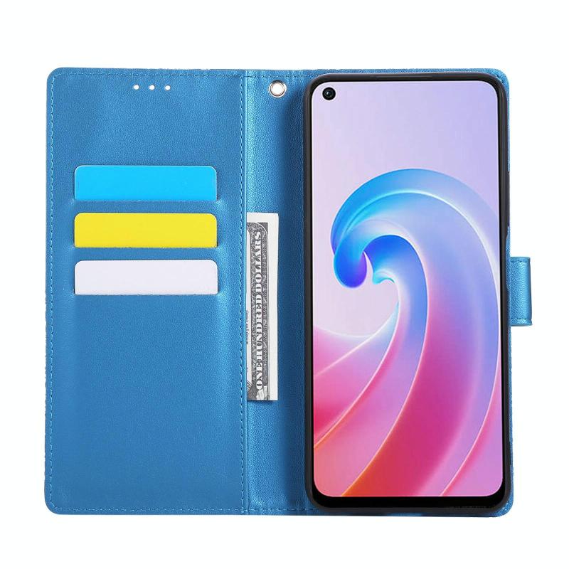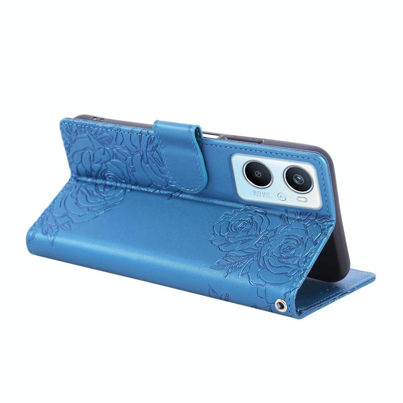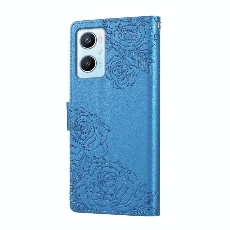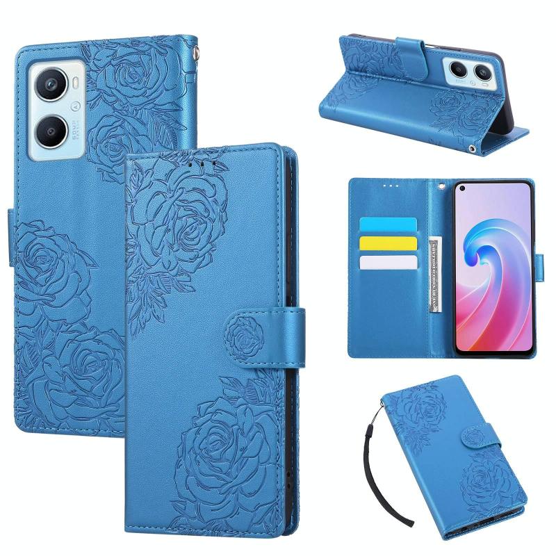 For OPPO A96 5G Rose Flower Embossed 3-Card Slots Leather Phone Case(Blue)