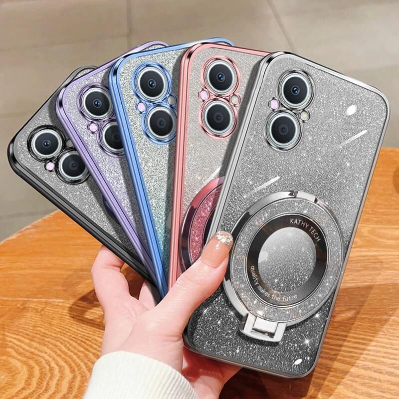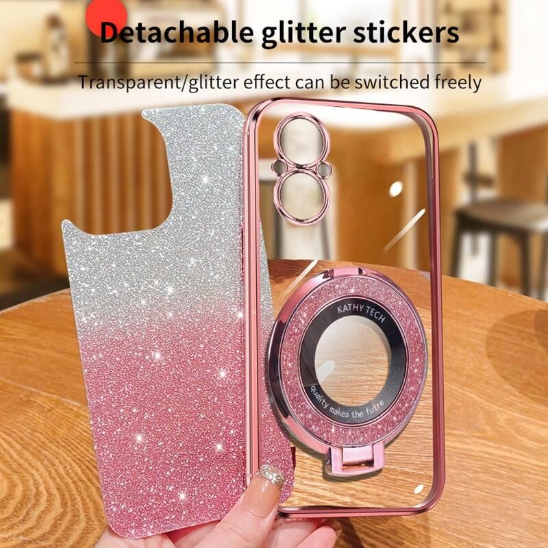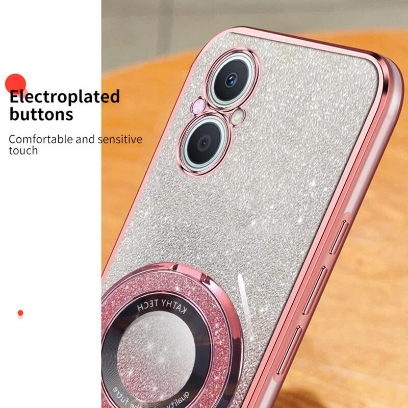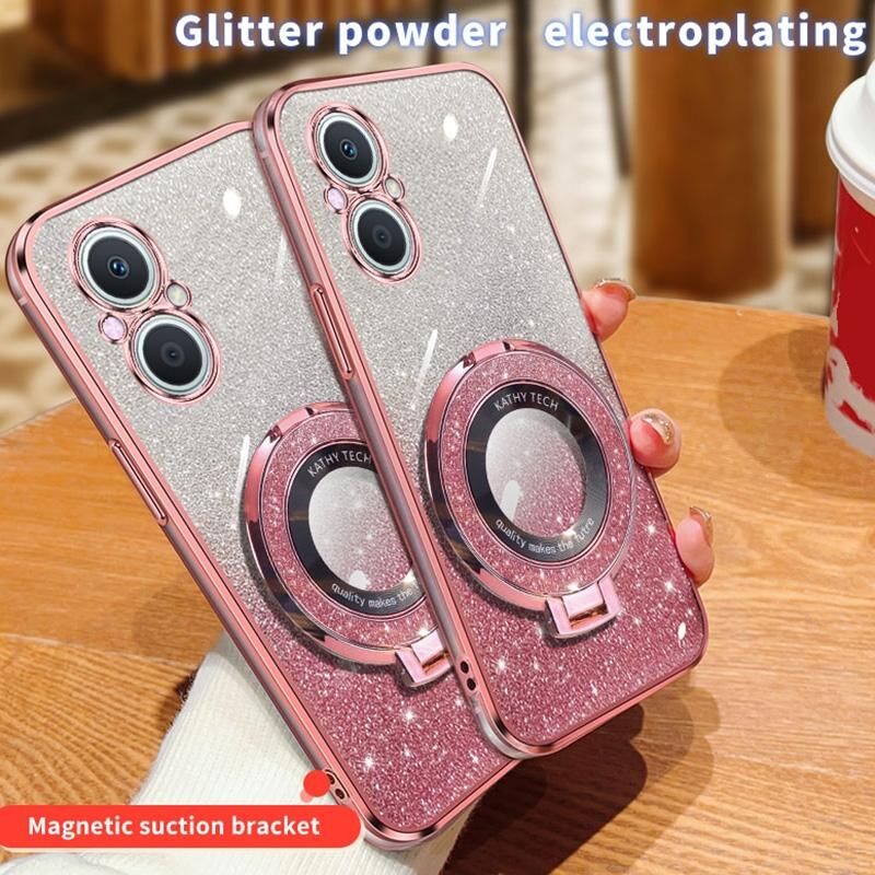 Θήκη τηλεφώνου TPU με στρογγυλό στήριγμα, επιμεταλλωμένο διαβαθμισμένο γκλίτερ για OPPO A96 / Reno7 Z (Ροζ)