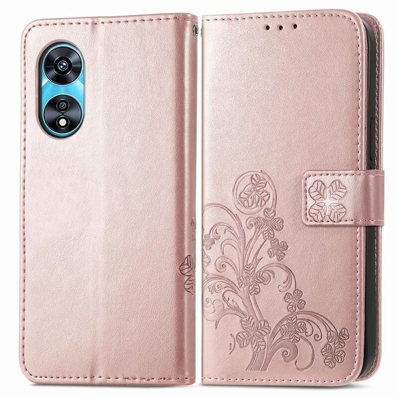 Για OPPO A97 5G Four-φύλλο κούμπωμα ανάγλυφο πόρπη δερμάτινη θήκη τηλεφώνου (Ροζ χρυσός)