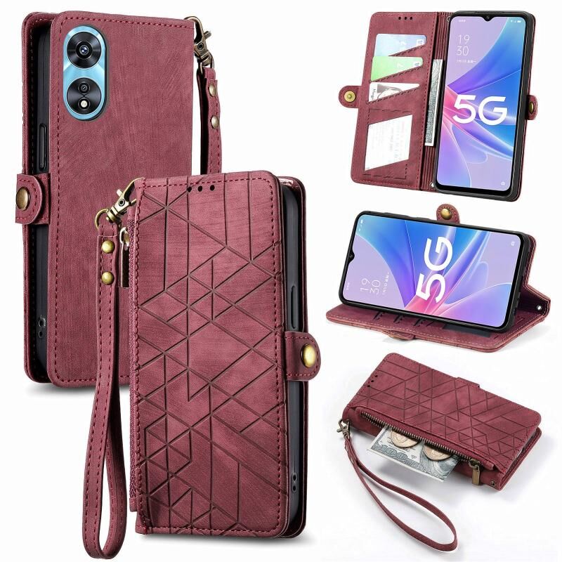 Για OPPO A97 5G γεωμετρική φερμουάρ πορτοφόλι πλευρά πόρπη δέρμα τηλέφωνο υπόθεση (κόκκινο)