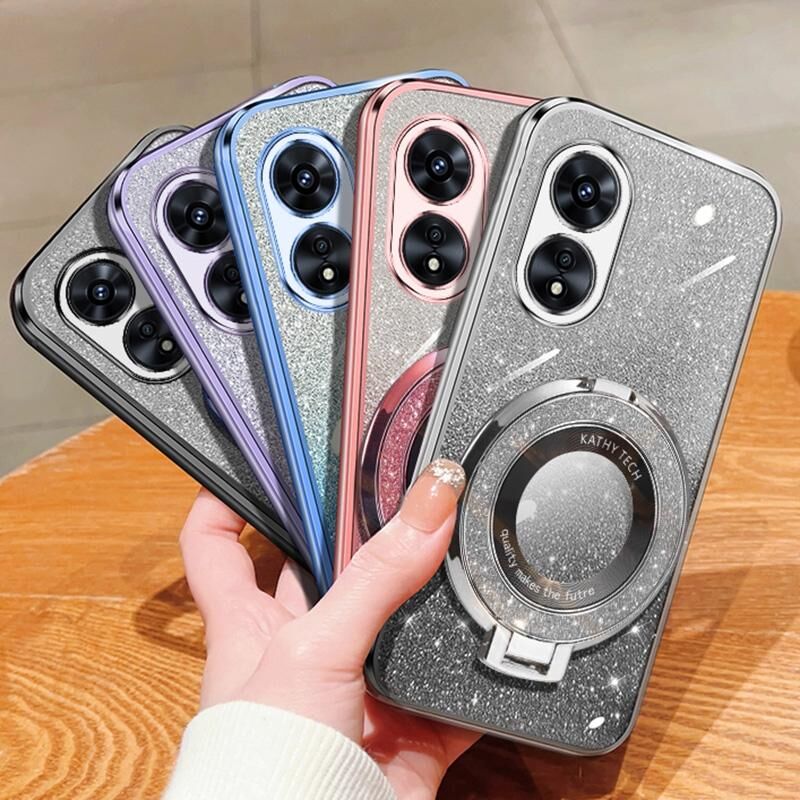 Θήκη τηλεφώνου TPU με στρογγυλό στήριγμα, επιμετάλλωση, διαβαθμισμένη λάμψη για OPPO A97 5G (Ροζ)
