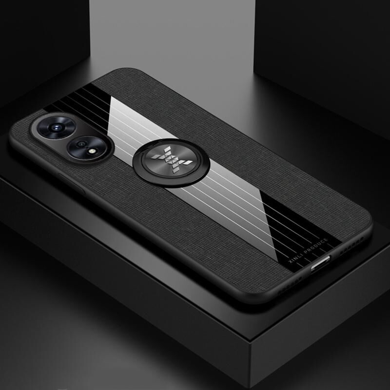 Για OPPO A97 XINLI ραφή ύφασμα Textue TPU τηλέφωνο υπόθεση με δαχτυλίδι κάτοχος (μαύρο) (XINLI)