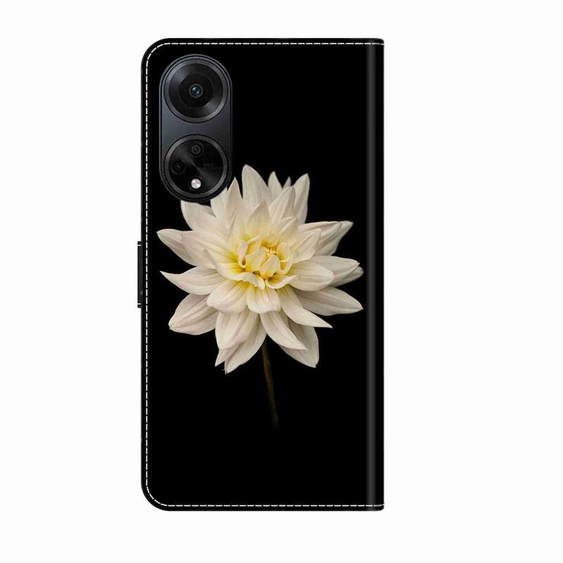 Θήκη τηλεφώνου από δέρμα, κρυστάλλινη, τρισδιάστατη, αντικραδασμική και προστατευτική για OPPO A98 5G (Λευκό Λουλούδι)