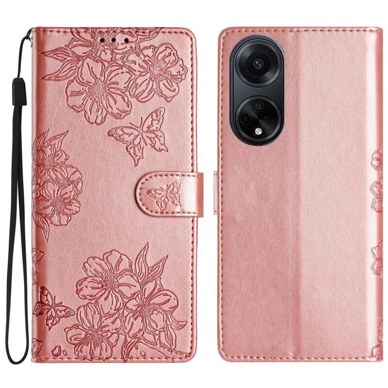 Θήκη τηλεφώνου OPPO A98 5G / F23 5G με ανάγλυφο PU υφή Cherry Blossom Butterfly (Ροζ χρυσός)