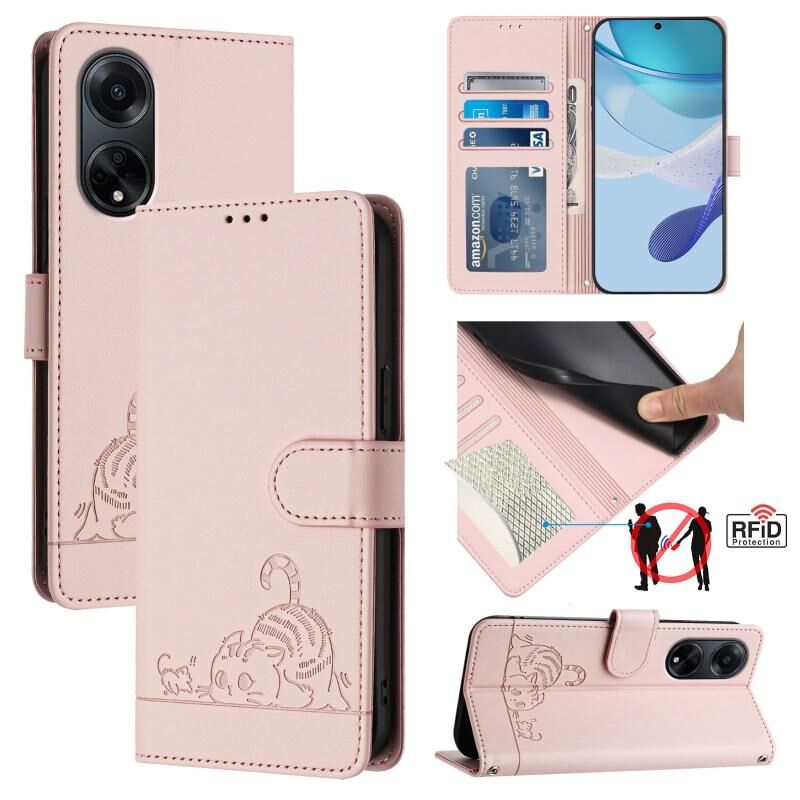 Θήκη τηλεφώνου από δέρμα με ανάγλυφο σχέδιο γάτας και ποντικού για OPPO A98 5G / F23 5G Ινδία, με λουρί (Μέντας Πράσινο)