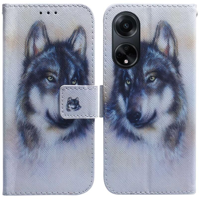 Θήκη τηλεφώνου από δέρμα με σχέδιο flip για OPPO A98 5G / F23 5G Ινδία (Λευκός Λύκος)