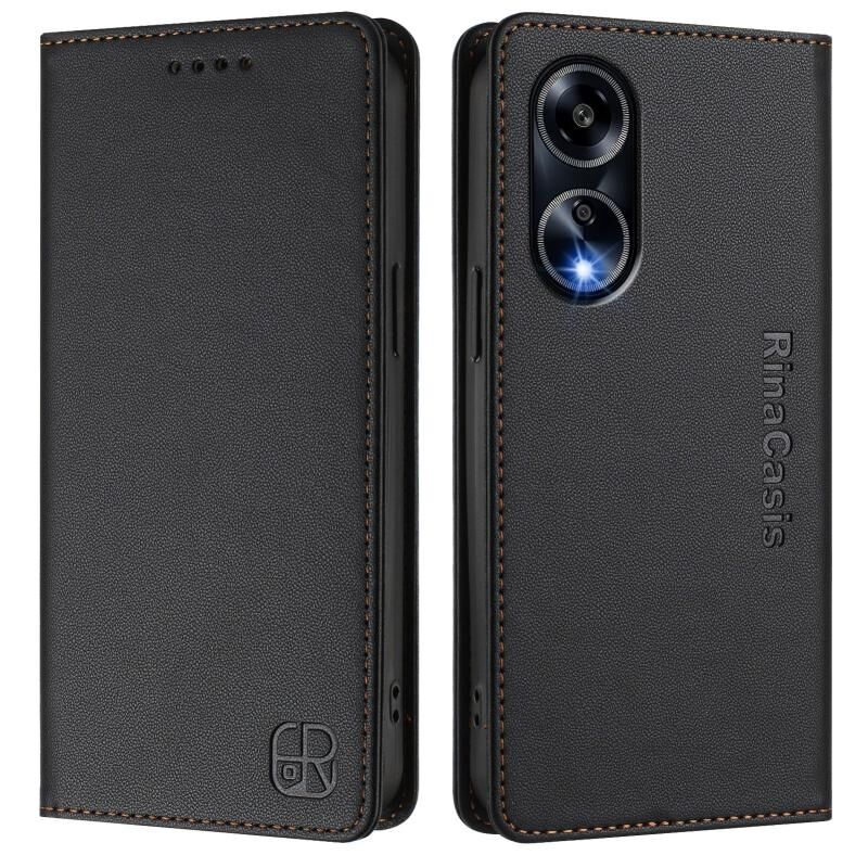 Θήκη τηλεφώνου δερμάτινη με μαγνητική απορρόφηση και διπλή πτύχωση για OPPO A98 5G / F23 5G India RC01 (Μαύρο)