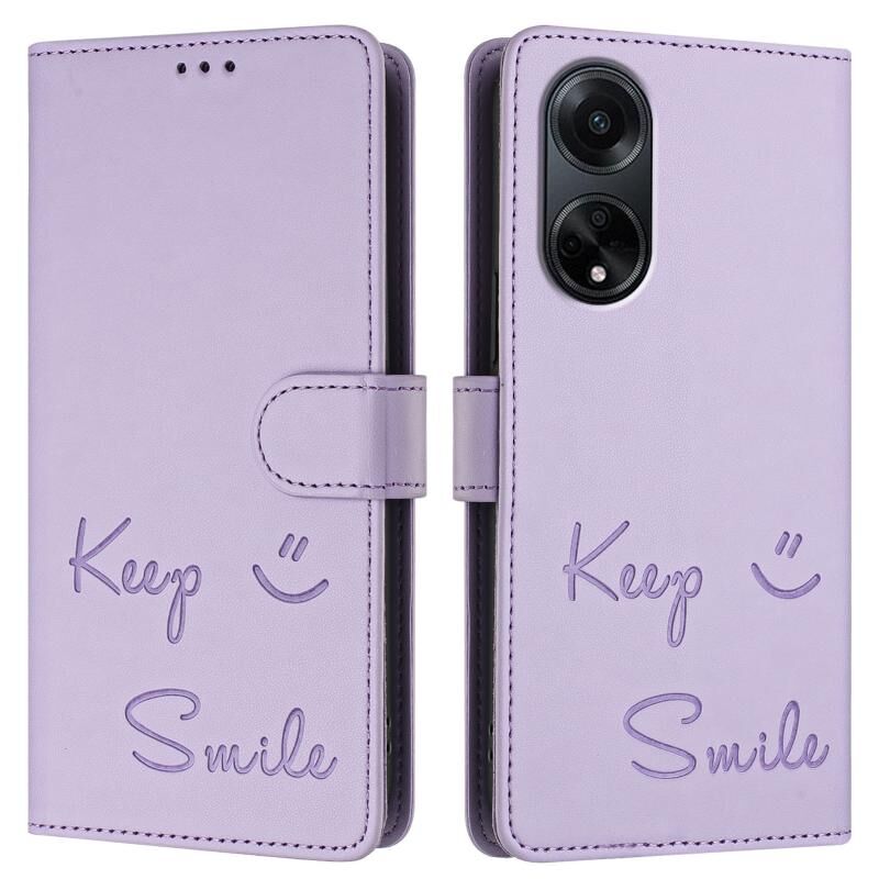 Για OPPO A98 5G / F23 5G Ινδία Χαμόγελο ανάγλυφο RFID δερμάτινη θήκη τηλεφώνου (ανοιχτό μωβ)
