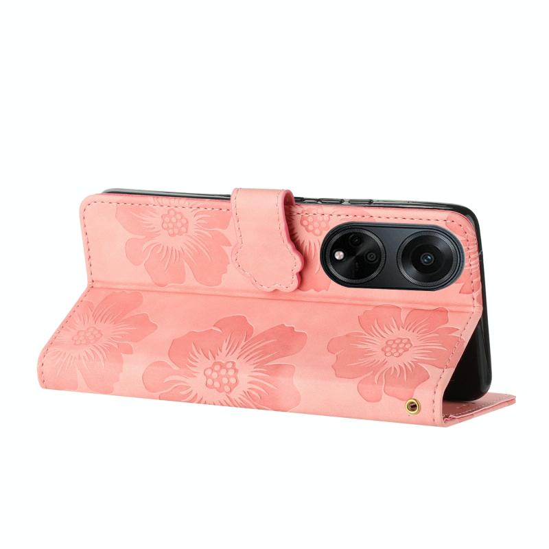 Θήκη τηλεφώνου από δέρμα με ανάγλυφο σχέδιο λουλουδιών για OPPO A98 5G (ρόζ)