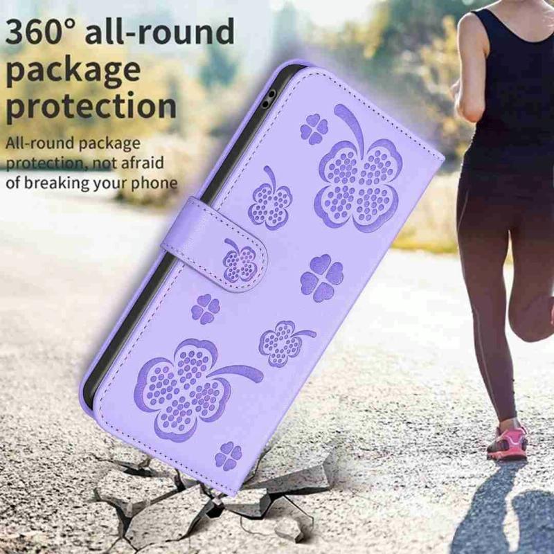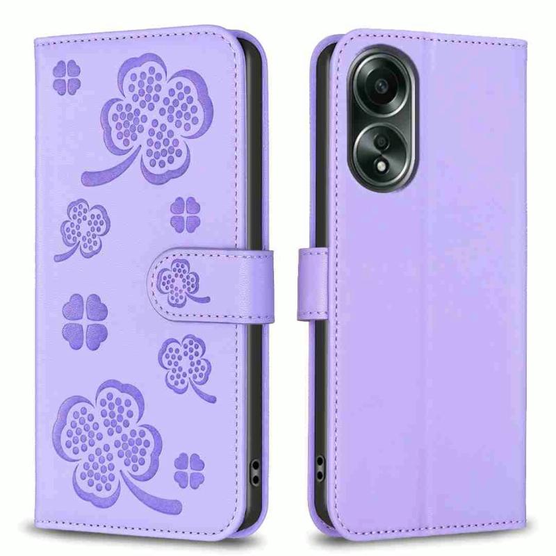 For OPPO A98 5G Four-leaf Embossed Leather Phone Case(Purple)