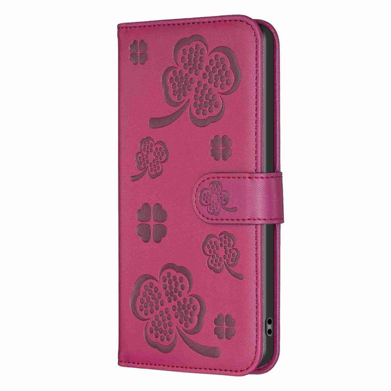 For OPPO A98 5G Four-leaf Embossed Leather Phone Case(Rose Red)