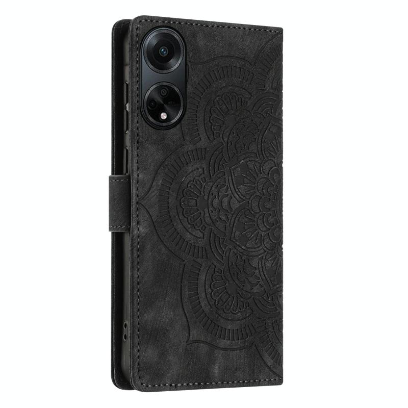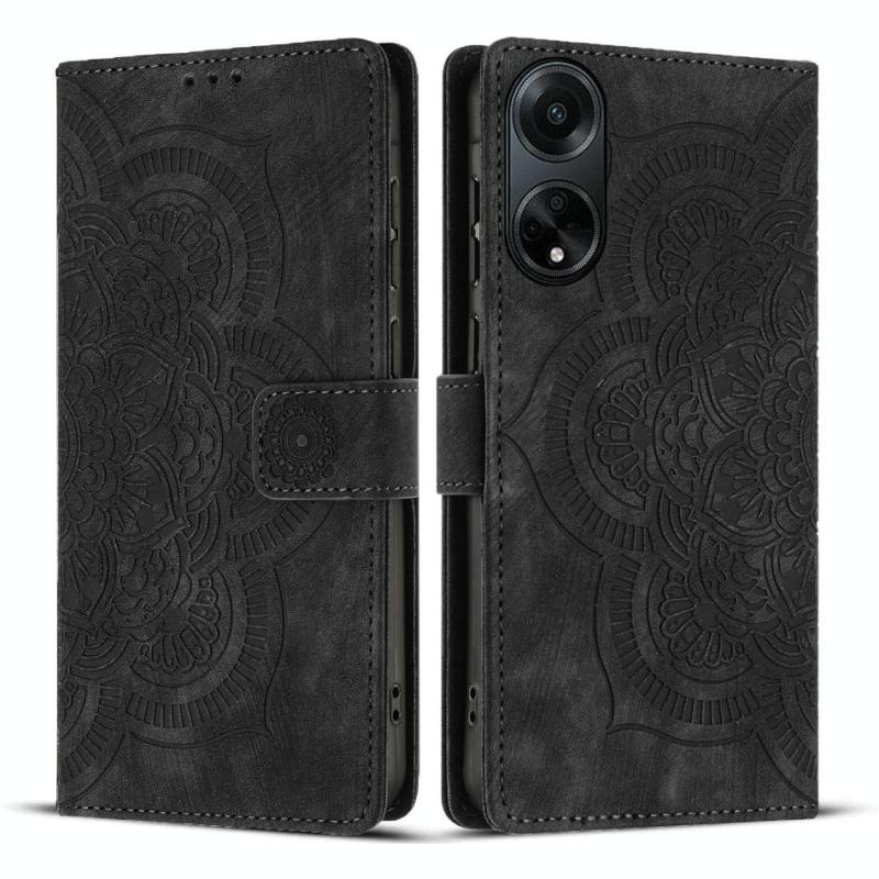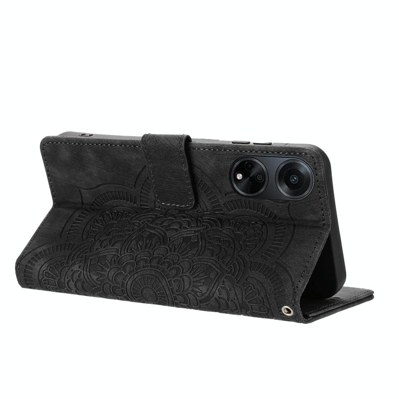 For OPPO A98 5G Mandala Embossed Retro Frosted Leather Phone Case(Black)