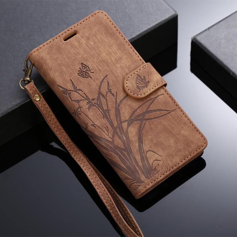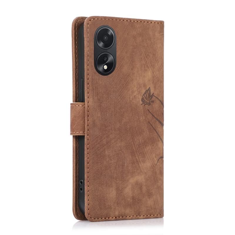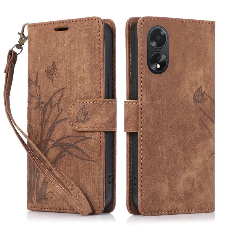 Θήκη τηλεφώνου από δέρμα με ανάγλυφο σχέδιο ορχιδέας και πεταλούδας για OPPO A98 5G (Καφέ)