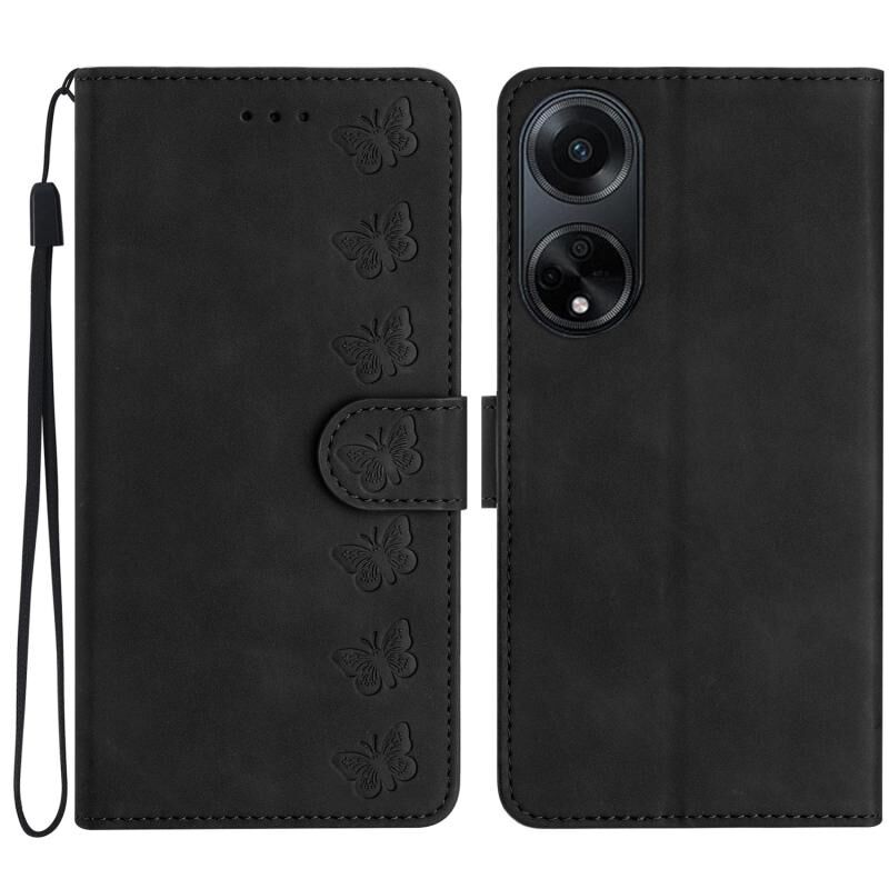 Για OPPO A98 5G Επτά πεταλούδες ανάγλυφη δερμάτινη θήκη τηλεφώνου (Μαύρο)