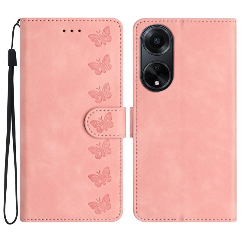 Για OPPO A98 5G Επτά πεταλούδες ανάγλυφη δερμάτινη θήκη τηλεφώνου (ρόζ)