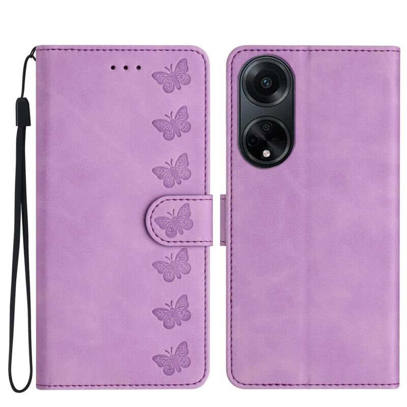 Για OPPO A98 5G Επτά πεταλούδες ανάγλυφη δερμάτινη θήκη τηλεφώνου (Μωβ)