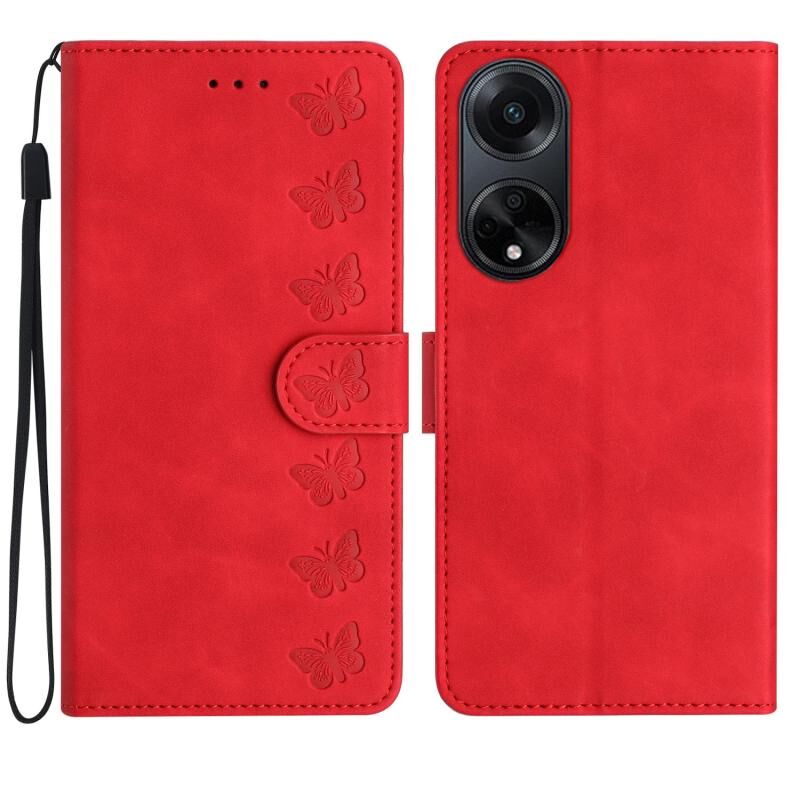 Για OPPO A98 5G Επτά πεταλούδες ανάγλυφη δερμάτινη θήκη τηλεφώνου (Κόκκινο)