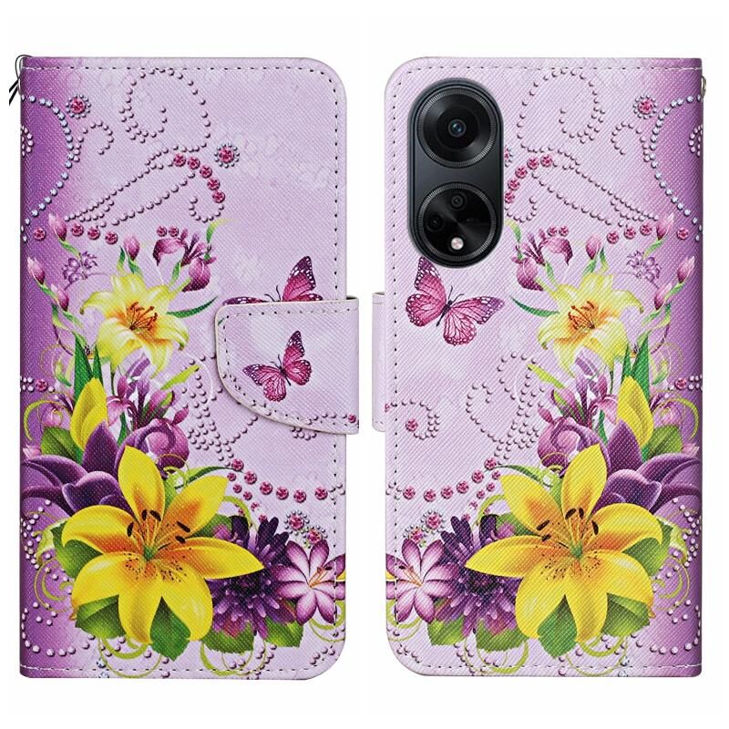 Θήκη τηλεφώνου από δέρμα με πολύχρωμο σχέδιο για OPPO A98 (Κίτρινο Πεταλούδα Λουλούδι)